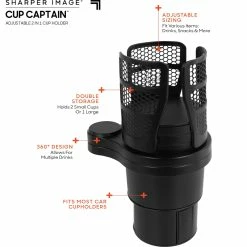 – Expandable Cup Holder — Adjusts to accommodate larger items