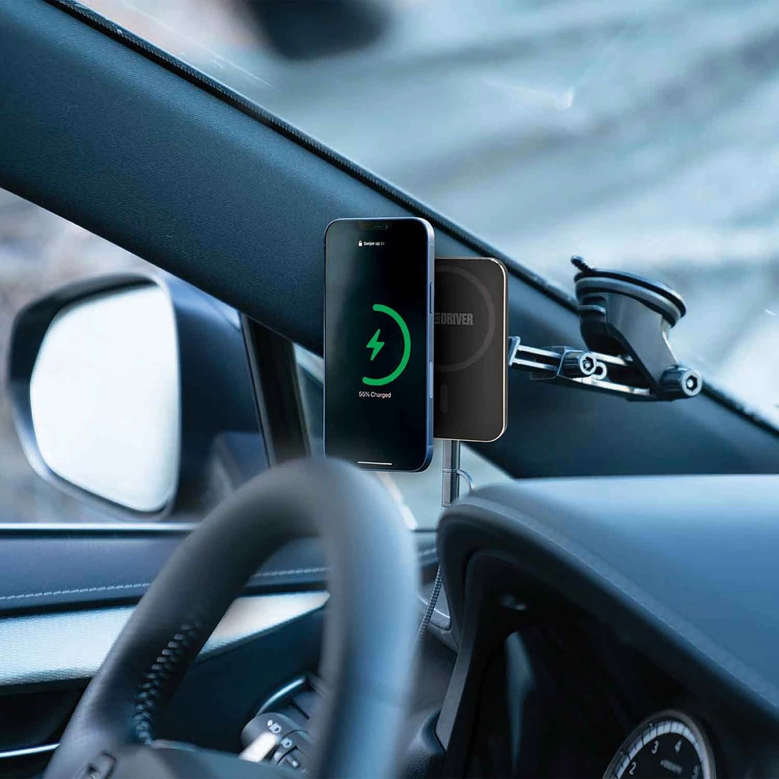 With built-in high-speed wireless charging and a magnetic panel to hold your MagSafe-equipped smartphone in place, this Car and Driver Wireless Charging Magnetic Mount Kit makes powering up easy, even with one hand. Just set your phone down against the panel in portrait or landscape mode and watch charging begin as the powerful neodymium magnets hold and center your phone for the best possible wireless charging connection. Model: CAD-9974BK.