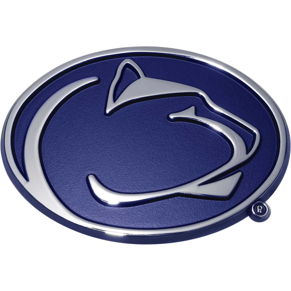 The Penn State University ‘Navy’ shiny chrome auto emblem (3.5 in. x 2.5 in.) by Elektroplate is all-metal (not plastic) with a shiny chrome finish and made in the USA. Attaches via paint-safe 3M adhesive foam tape. All Elektroplate car emblems are comprised of a chrome-plated metal finish made to withstand harsh outdoor conditions. This auto emblem will look brand new for years to come (as opposed to cheap imitations that will fade or chip within months of being on your vehicle). Model: PNST-NAVY-C.