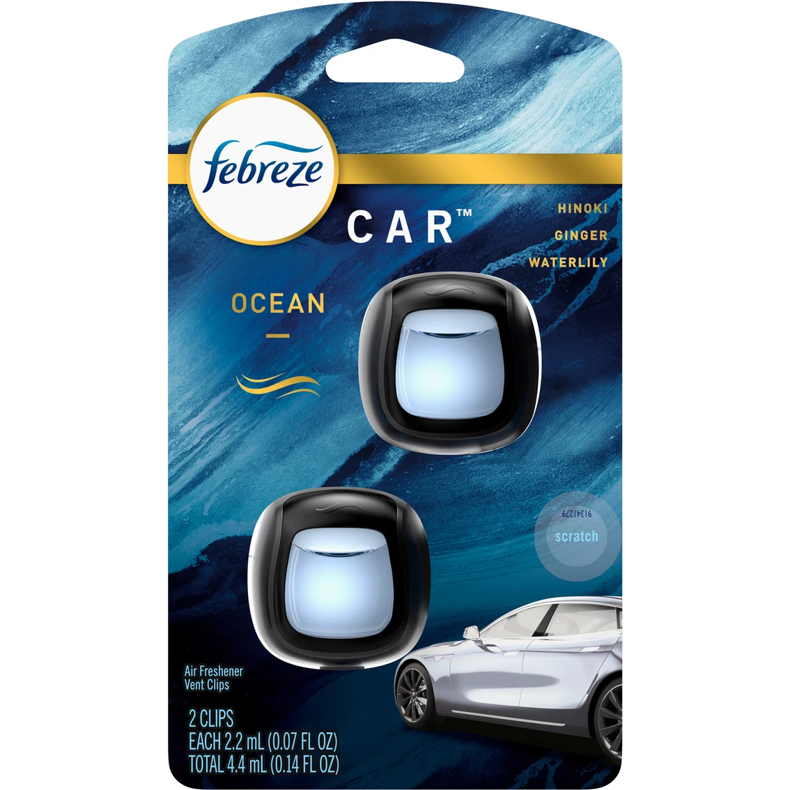Elevate your commute with an air of distinction: This Febreze CAR Vent Clip air freshener eliminates odors with a scent unlike any other.β―Make a statement with the carefully crafted scent of waterlily, ginger, and hinoki in mesmerizing Febreze Ocean.β―Want to enhance your drive with an invisible, yet noticeable upgrade that lasts up to 40 days? Simply flip the clip until you hear a click, clip into your carβs vent, turn on the air, and indulge your passengers with a luxurious fragrance thatβs almost too good for a car. And when it comes to the level of intensity, youβre in the driverβs seat: Crank it up or dial it down with CAR Vent Clipβs adjustable nozzle. Looking to up your fragrance game at home, too? Try our other luxe Febreze scents.β―