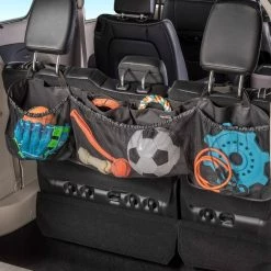 Add extra, off-the-floor cargo storage on the seatback in SUV’s, hatchbacks, jeeps and wagons with the High Road Cargo Pack. A versatile cargo organizer with 5 roomy pockets to hold sports equipment, dog supplies, tools, equipment and more. Includes roomy center mesh pocket and 2 side mesh pockets keep larger items contained and readily accessible. Features 2 gusseted pockets in the center store smaller items. Adjustable webbed straps buckle around headrest posts. Made from heavy-duty pack cloth. Model: HR-5515-05BLK.