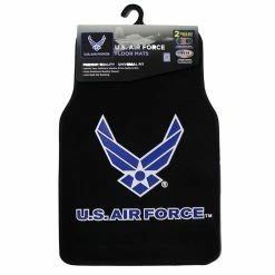 Show off your Air Force pride throughout your car interior with our new US Air Force floor mat set! This great 2 piece floor mat set will shield your car’s interior from spills, dirt and more while displaying a bold US Air Force wings logo! It is compatible with most vehicles with a size of 17″ X 25″ and made of a high quality stain resistant carpeting with an anti-skid rubber back to keep it in place.