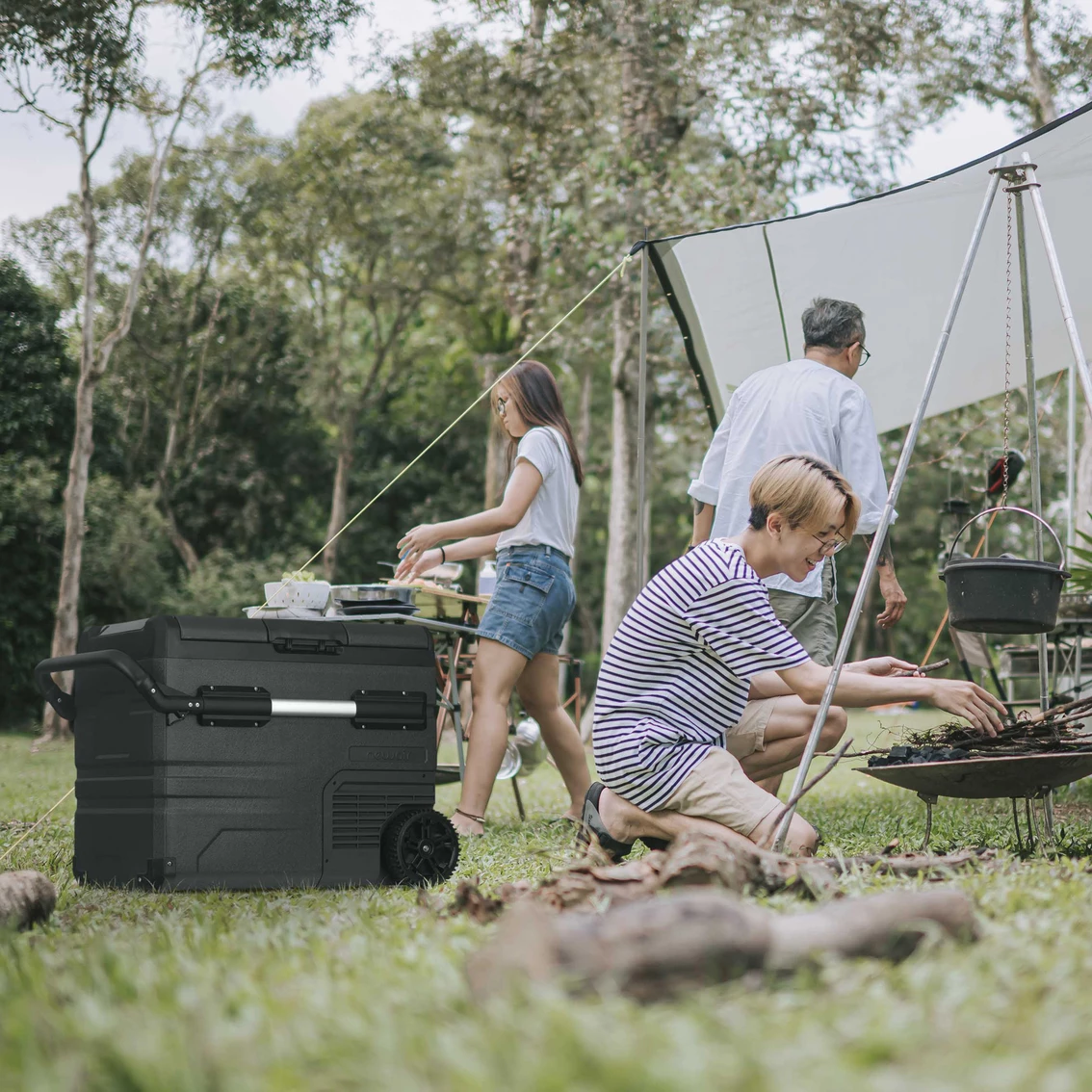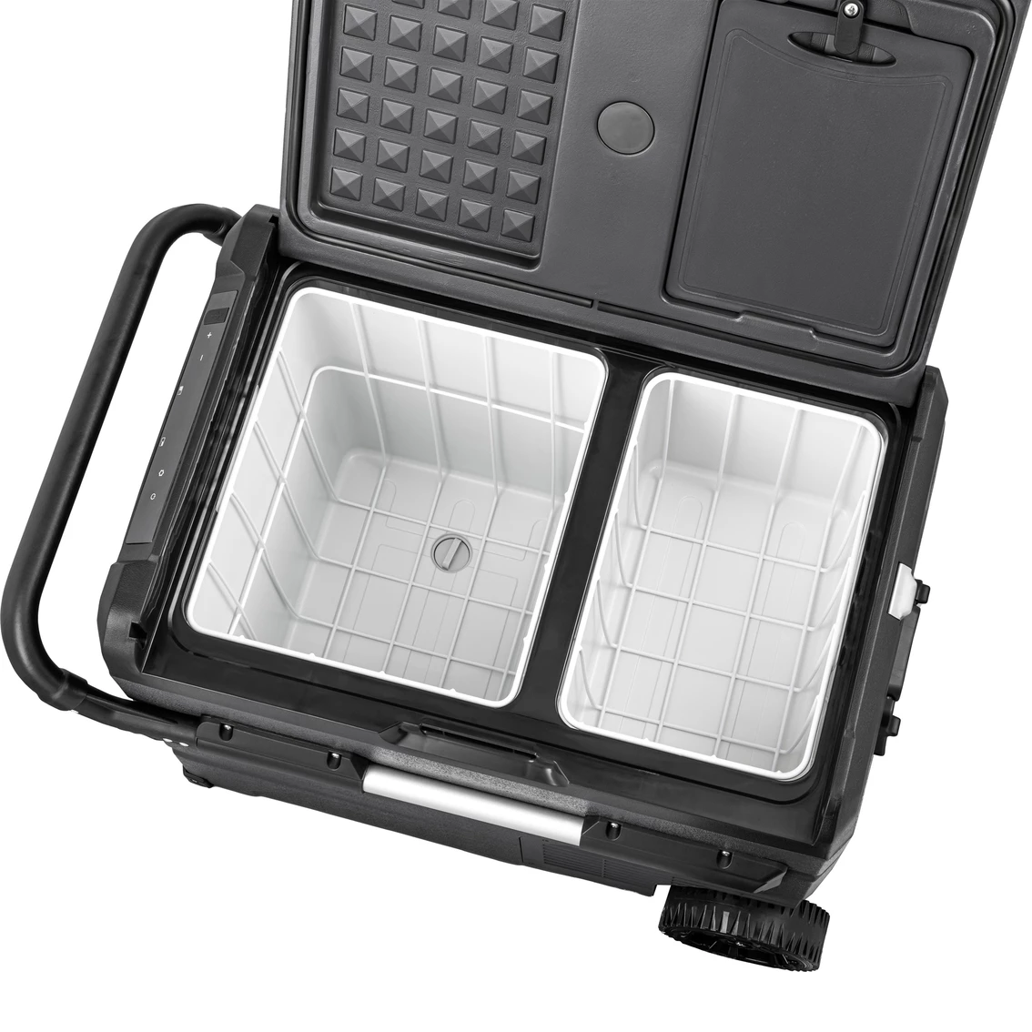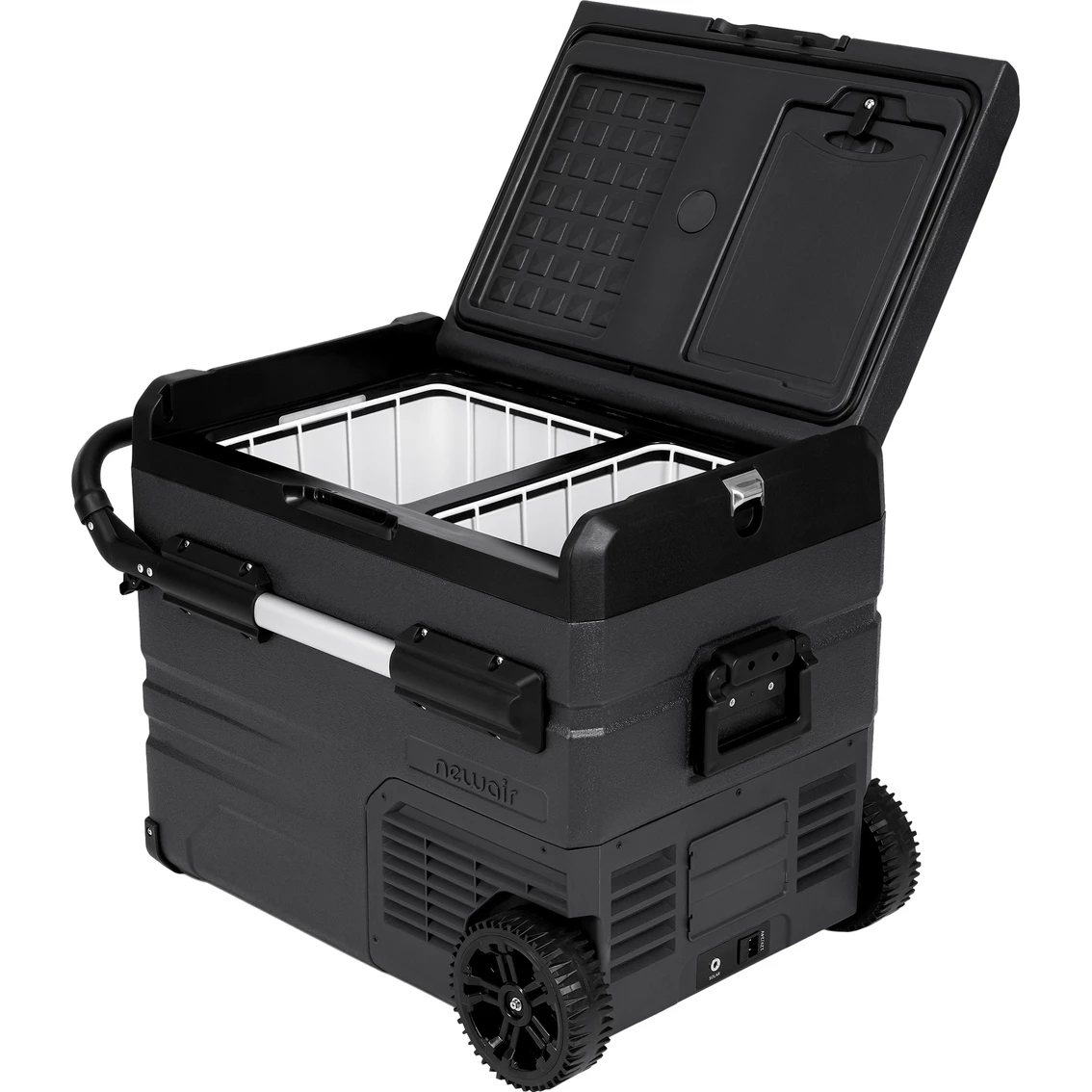 The Newair Portable 48 qt. Electric Cooler with LG Compressor Fridge and Freezer is a portable unit that lets you bring all the food you need for trips into the wilderness. It’s weather-stripped reversible doors, retractable handle and adventure-grade wheels let you bring it anywhere, while the 80-qt. capacity ensures you can feed the whole family.